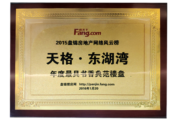 天格地產(chǎn)榮獲“2011年度最佳人居環(huán)境樓盤”稱號;“五星級企業(yè)”榮譽;“2013年度盤錦最具企業(yè)責(zé)任感樓盤”稱號;“2015年度最具影響力樓盤”和“年度最具書香典范樓盤”;“大洼區(qū)2019年度、2020年度重點納稅企業(yè)”;“大洼區(qū)唐家鎮(zhèn)2020年度重點納稅企業(yè)”。