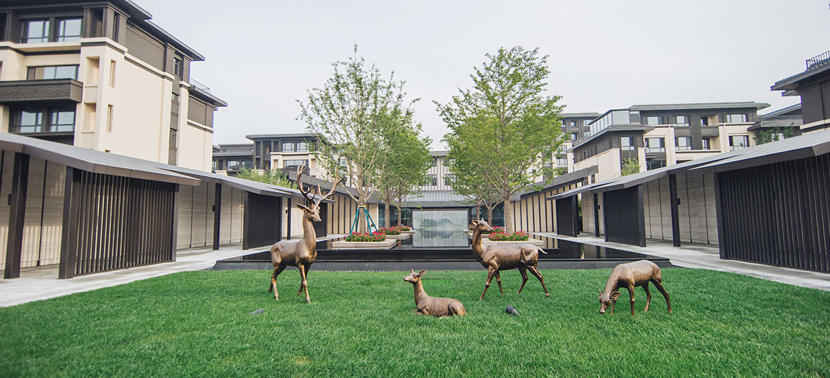 天格·錦翠書院采用新中式建筑風(fēng)格,以現(xiàn)代手法詮釋中式建筑風(fēng)格,適度提煉中式建筑的造型語言,總結(jié)中式建筑居住模式中的空間關(guān)系,包括院落空間與街道空間,重現(xiàn)中式建筑與自然元素的和諧關(guān)系,創(chuàng)造與自然良性對話的居住氛圍。在園林景觀設(shè)計上,以“三觀九制”的中式文化內(nèi)涵,七進(jìn)歸家禮序的空間脈絡(luò),營造一方雋秀雅境,帶給業(yè)主們以理想和現(xiàn)實的雙重享受。園區(qū)內(nèi)還規(guī)劃設(shè)計了一片既可以容納集體活動、又可以提供個性活動的開放式草坪活動區(qū),同時還打造了約500m2的全塑膠社區(qū)兒童活動空間、青年健身場地,為業(yè)主提供了一個具有休閑和人文修養(yǎng)的社交平臺。